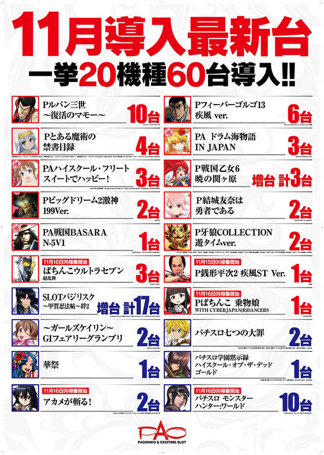 PAO千里店 11/3(祝)☆新台入替☆