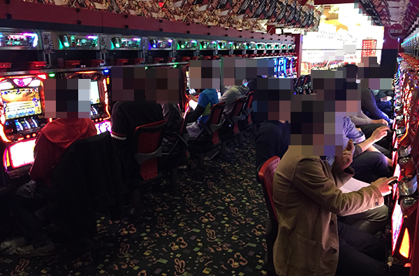 ジャグラーシリーズなどのボーナスタイプにも満席近くになっている機種が多く、コーナー全体が大きく信頼されていることも感じられた。