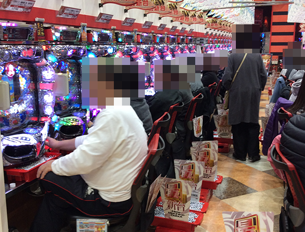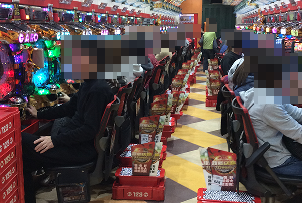 朝イチは新台を中心ににぎわっており、4円パチンコでは「CRフィーバーアクエリオンEVOL」や「CRスーパー海物語IN JAPAN」、「CRA牙狼金色になれ〜ザルバとの契約〜」などがほぼ満席。