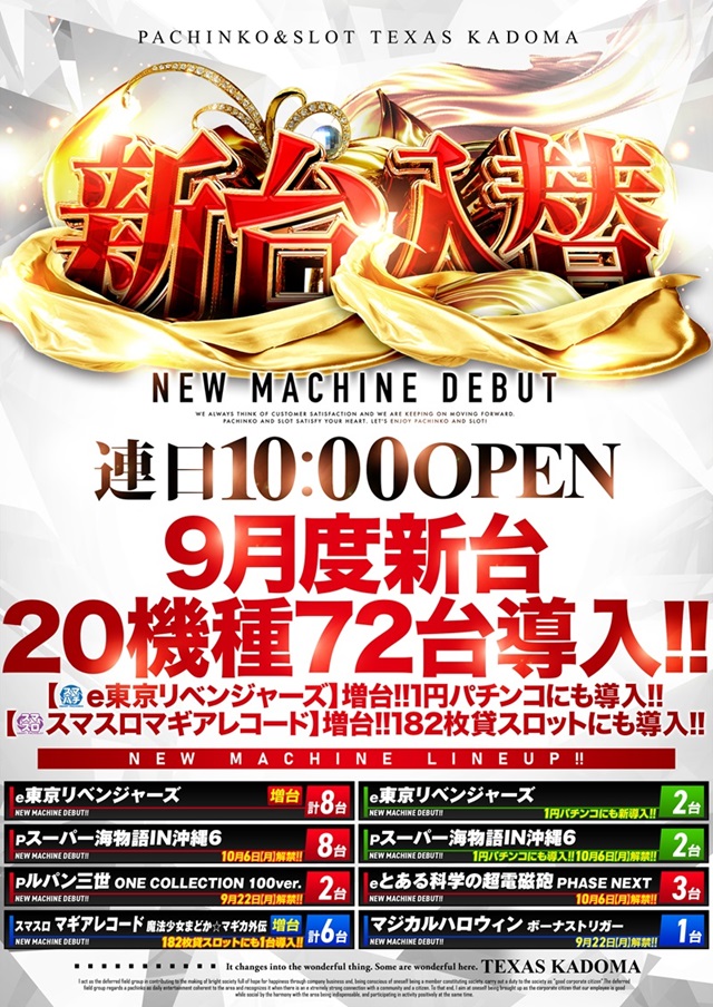 2025/10/0810月9日(木)新台入替!全館12時OPEN!!