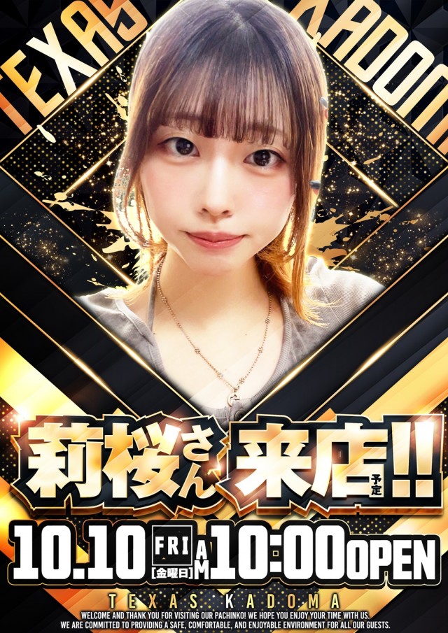 10月10日(金)莉桜さん来店予定!!10時オープン!!🌝