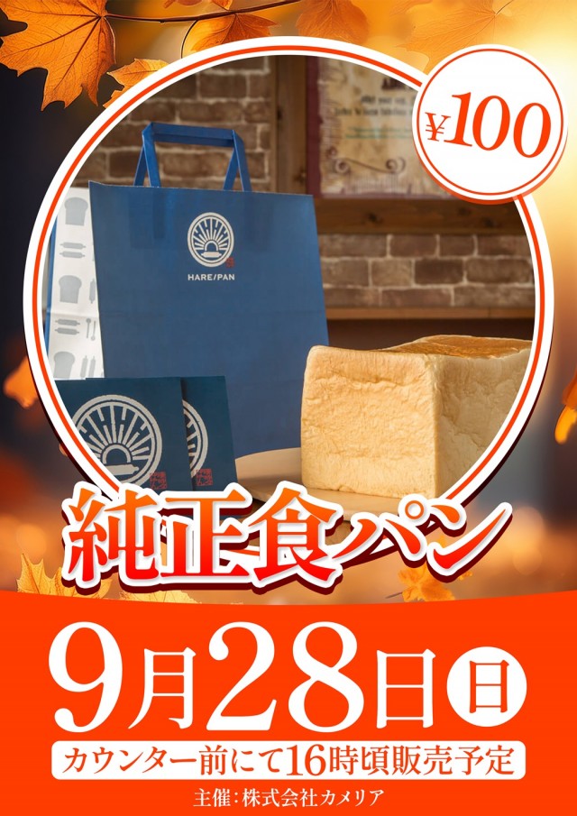 2025/09/279月28日【日】純正食パン販売会開催♪