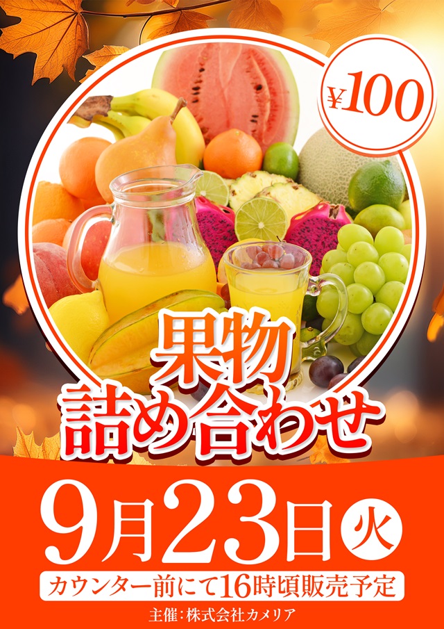 2025/09/229月23日【火】果物詰め合わせ販売会開催♪