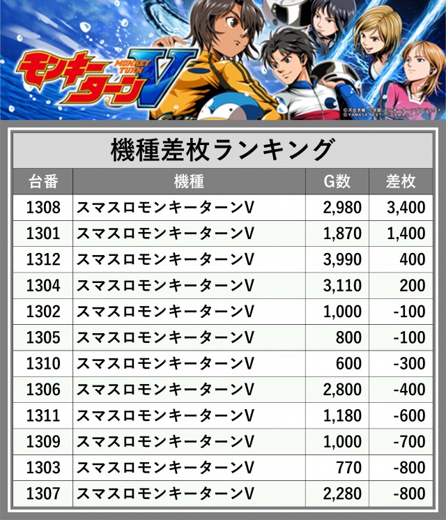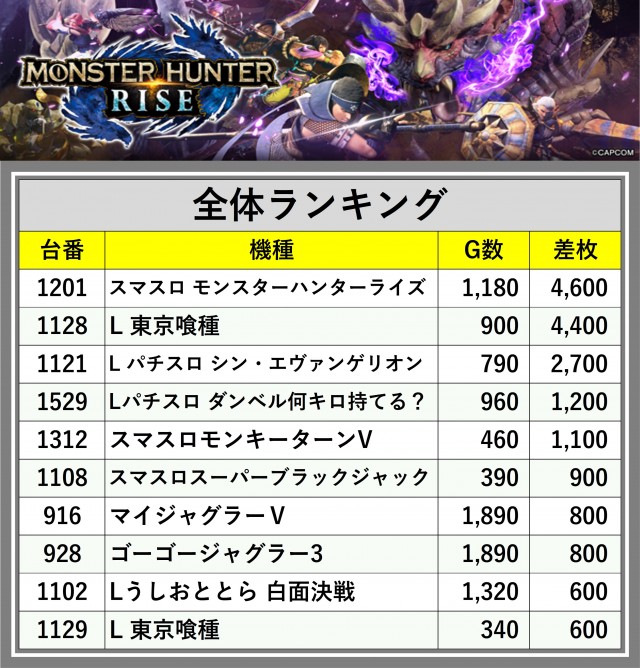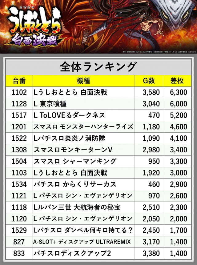 ※差枚数順に掲載しています