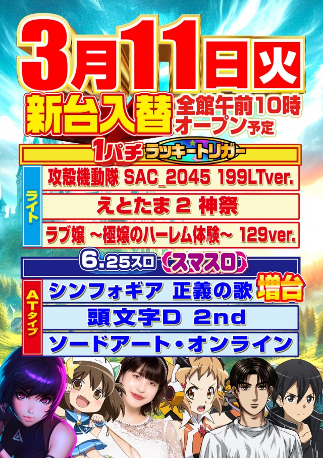 2月6日、新台入替初日!パチンコ&スロット6機種6台導入♪