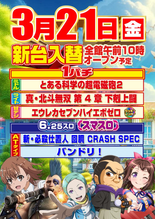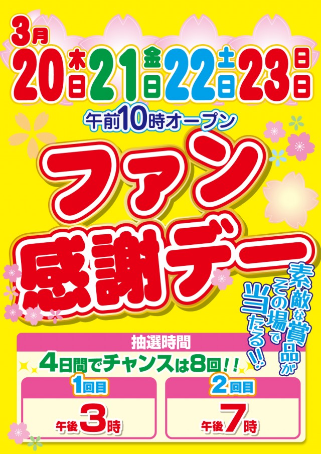 明日3月21日 新台入替&ファン感謝デーのご案内♬