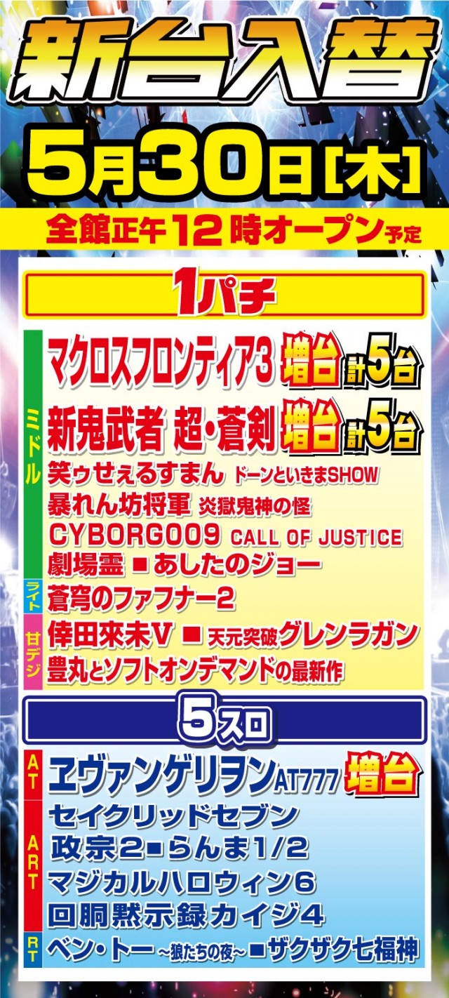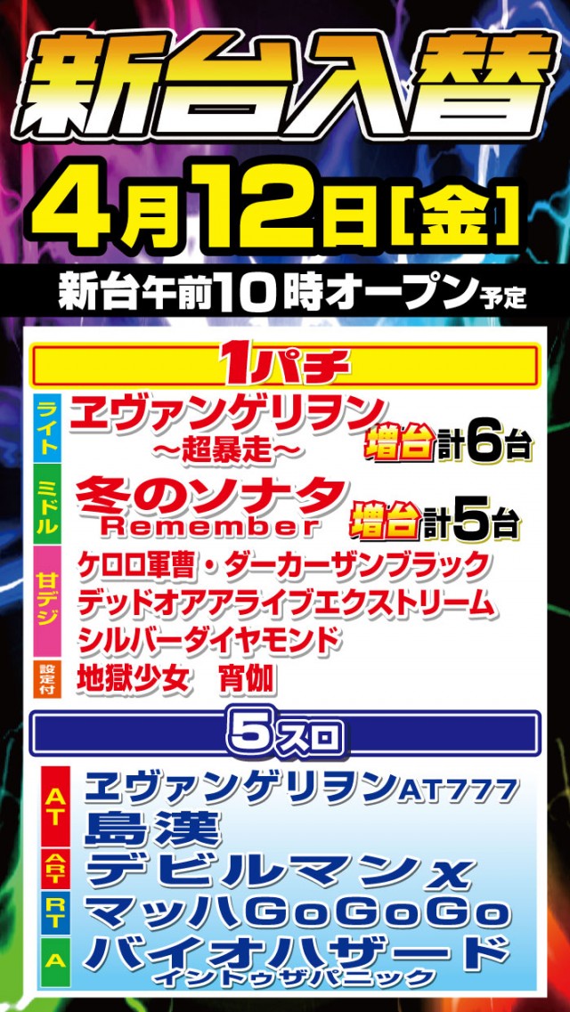 本日新台入替‼「ヱヴァAT777」等 新機種導入完了!