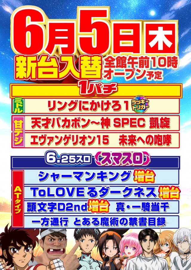 6月5日 新台入替&ジャグラー取材開催のご案内♬