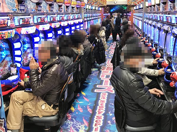 取材日も多くのプレイヤーが来店。レートを問わず、様々な機種が支持されているようだった。