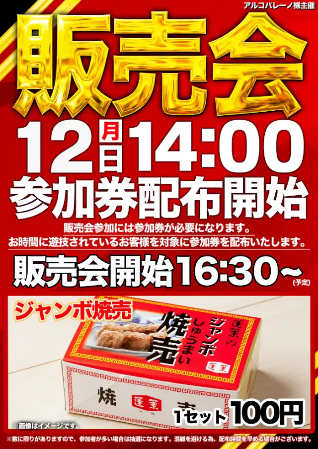 12月27日 (土)10時開店 整理券9時40分配布予定!