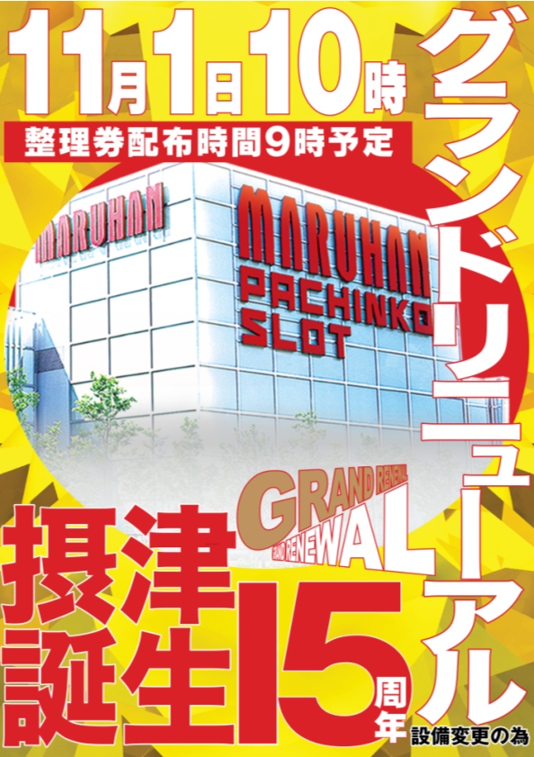 【マルハン摂津店】4/1[木]10時開店 整理券9:30配布