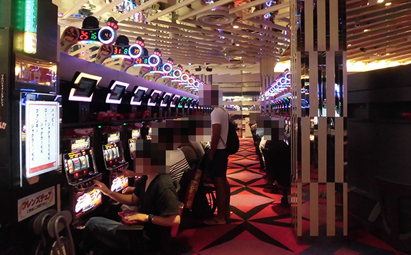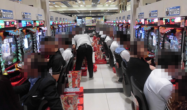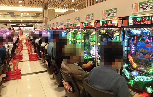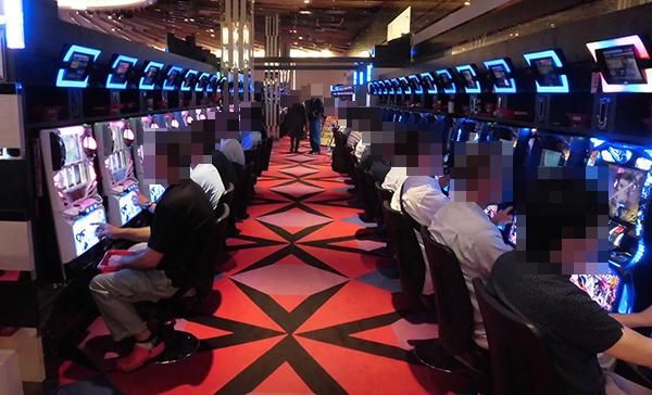 ホール内を覗いてみると、たくさんのプレイヤーが遊技をおこなっており、明るい雰囲気が感じられた。