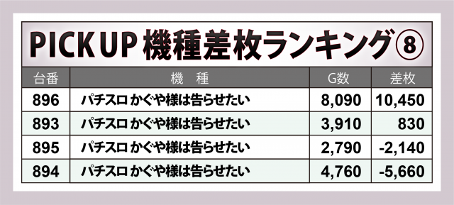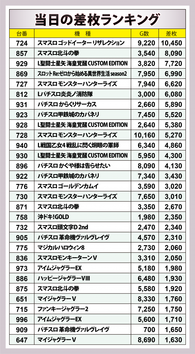 ※差枚数順に掲載しています。