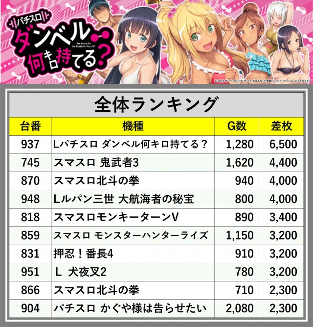厳選された取材対象機種をはじめ、その他スロット全体から好記録が飛び出した!プレイヤーが楽しんだ1日を下記データにて振り返ってみて欲しい。