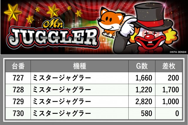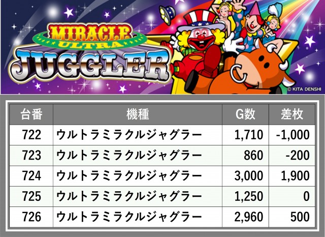 厳選された取材対象機種をはじめ、その他スロット全体から好記録が飛び出した!プレイヤーが楽しんだ1日を下記データにて振り返ってみて欲しい。