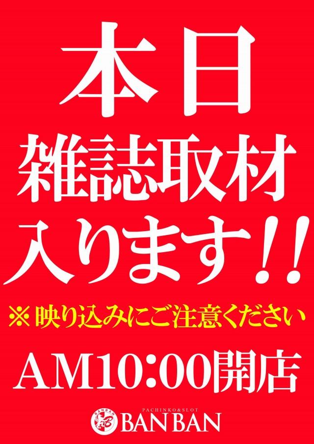 本日 パチスロ必勝本取材入ります♪