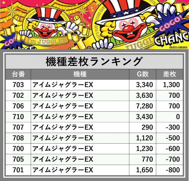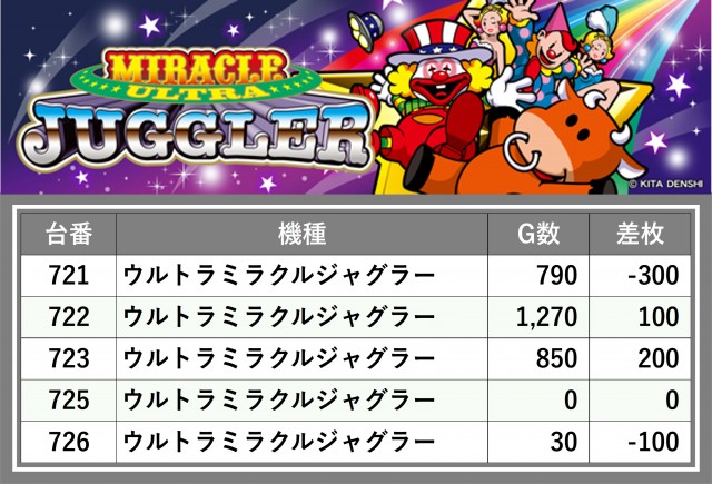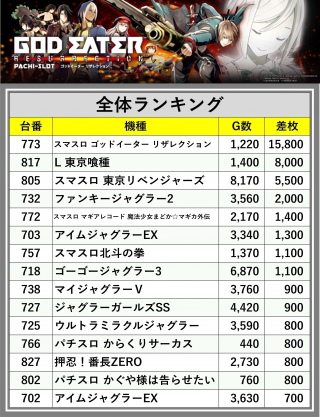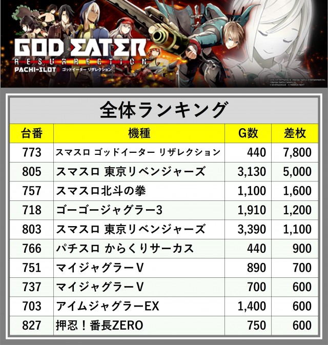 厳選された取材対象機種をはじめ、その他スロット全体から好記録が飛び出した!プレイヤーが楽しんだ1日を下記データにて振り返ってみて欲しい。