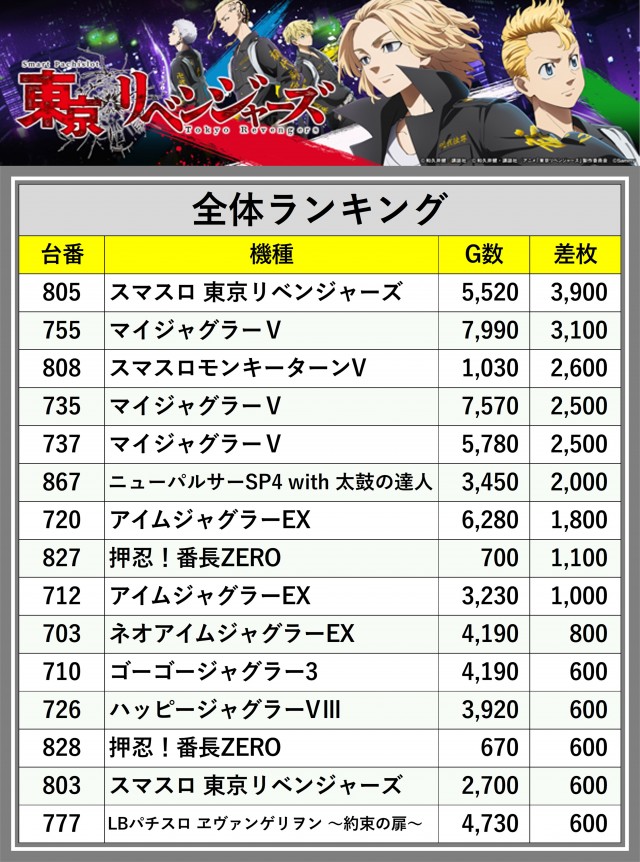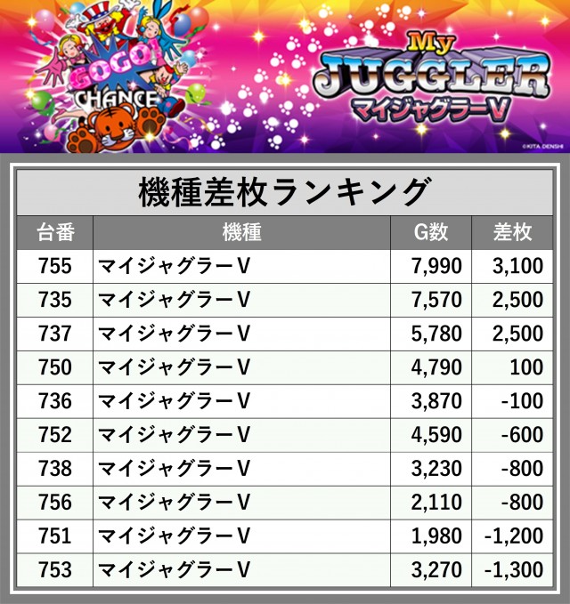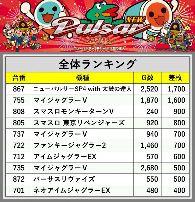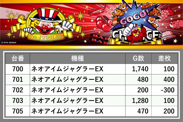 厳選された取材対象機種をはじめ、その他スロット全体から好記録が飛び出した!プレイヤーが楽しんだ1日を下記データにて振り返ってみて欲しい。