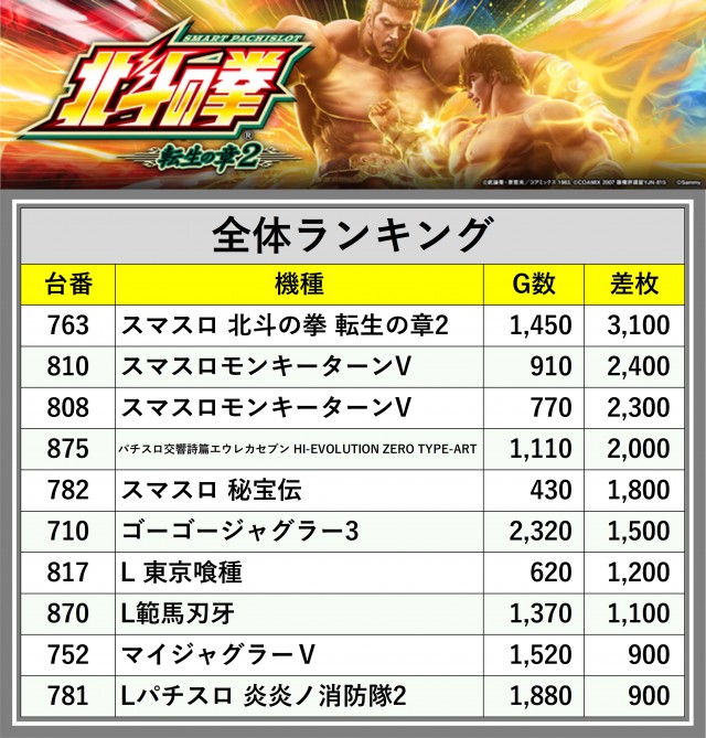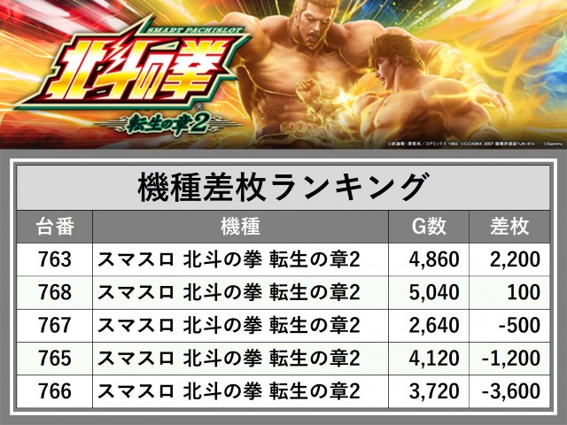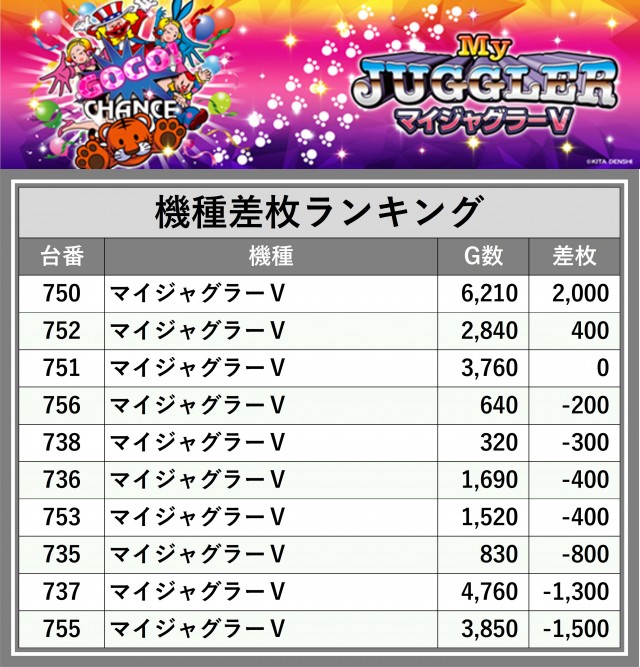 ※差枚数順に掲載しています