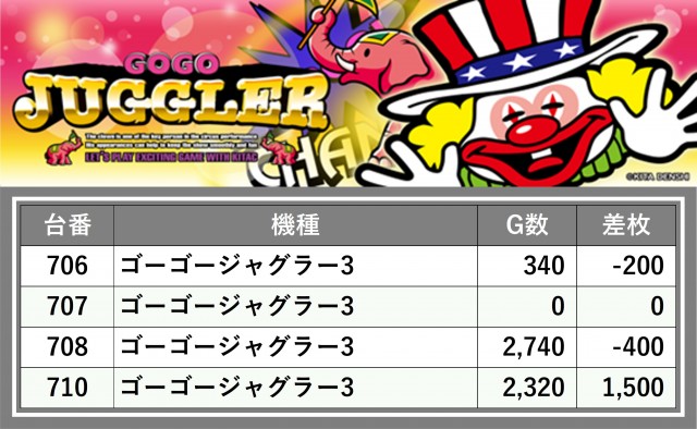厳選された取材対象機種をはじめ、その他スロット全体から好記録が飛び出した!プレイヤーが楽しんだ1日を下記データにて振り返ってみて欲しい。