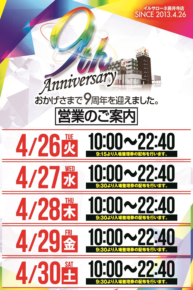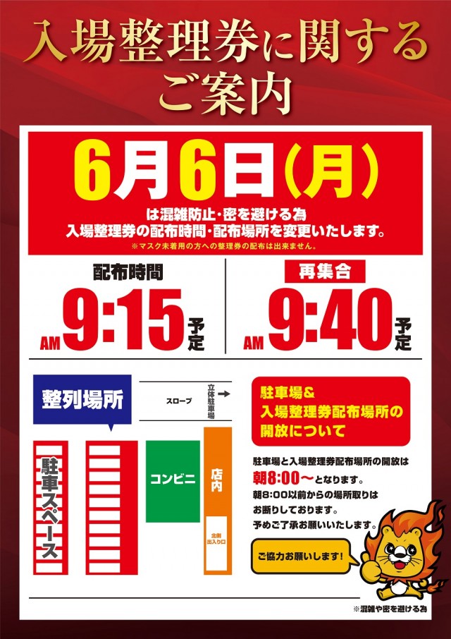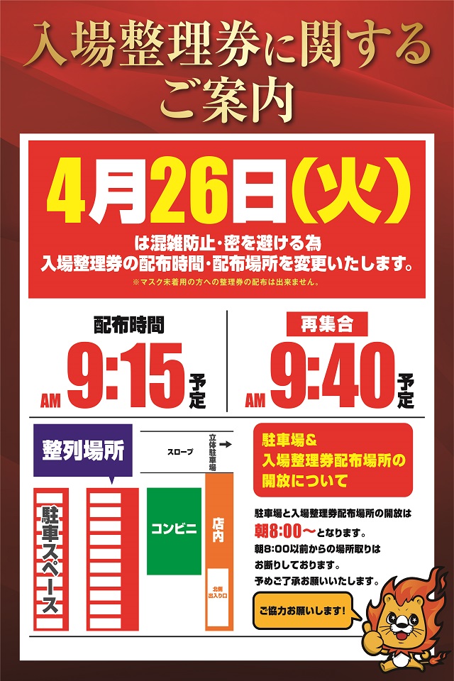 4/26(火)は普段と整理券配布時間が異なります。