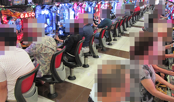 16時頃の4円パチンコでは、「ぱちんこCR真・北斗無双」や「CR牙狼 魔戒ノ花」、「ぱちんこCR北斗の拳6 拳王」などがひときわ大きく盛り上がっており、機種の魅力を味わっているといったプレイヤーも多い。稼働率だけでなく、満足度の高さも際立っていたように思えた。