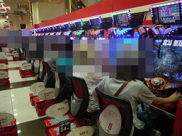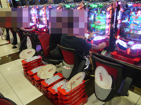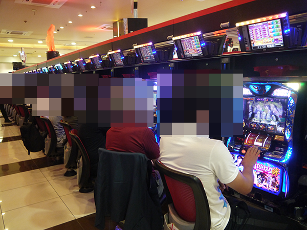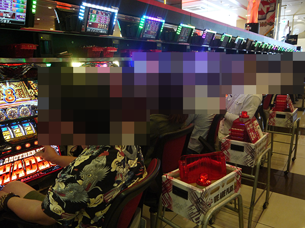 5円パチスロでも、たくさんのプレイヤーが笑みを浮かべて遊技を楽しんでいた。