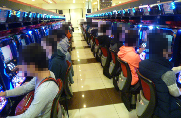 また、ジャグラーシリーズなどのボーナスタイプのシマにも華やかな光景が広がっており、20円パチスロ全体が活気づいていた。