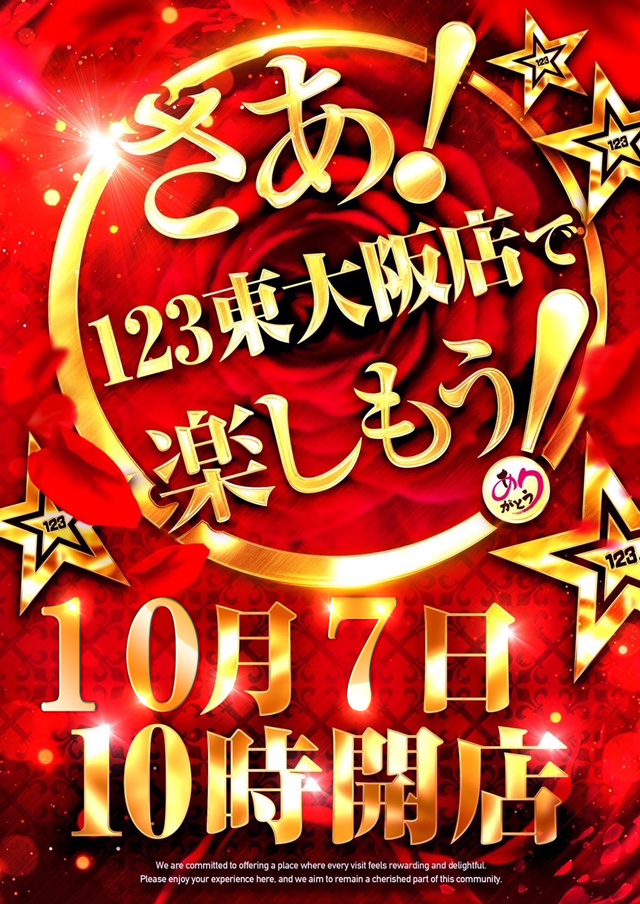 さぁ、123東大阪店で楽しもう‼全館10時OPEN
