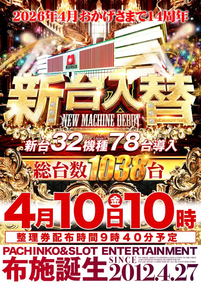 【マルハン布施店】4月9日12時オープン!大型新台入替予定!