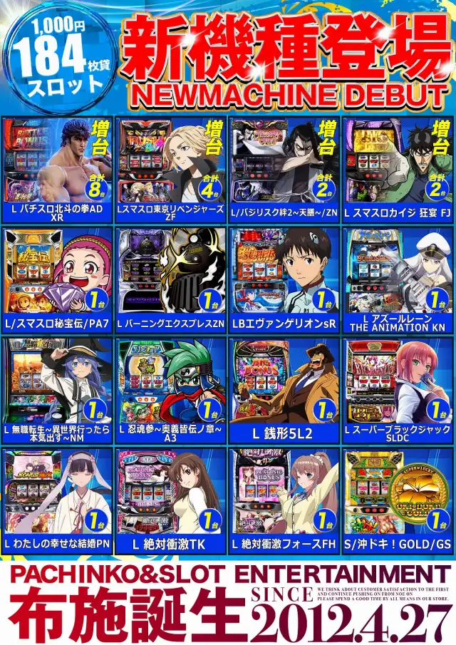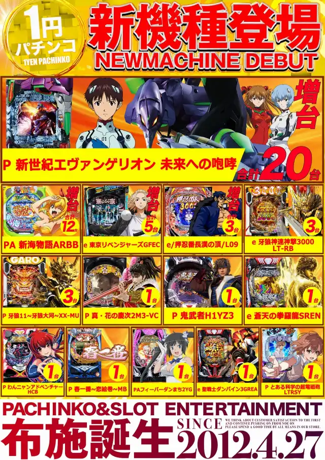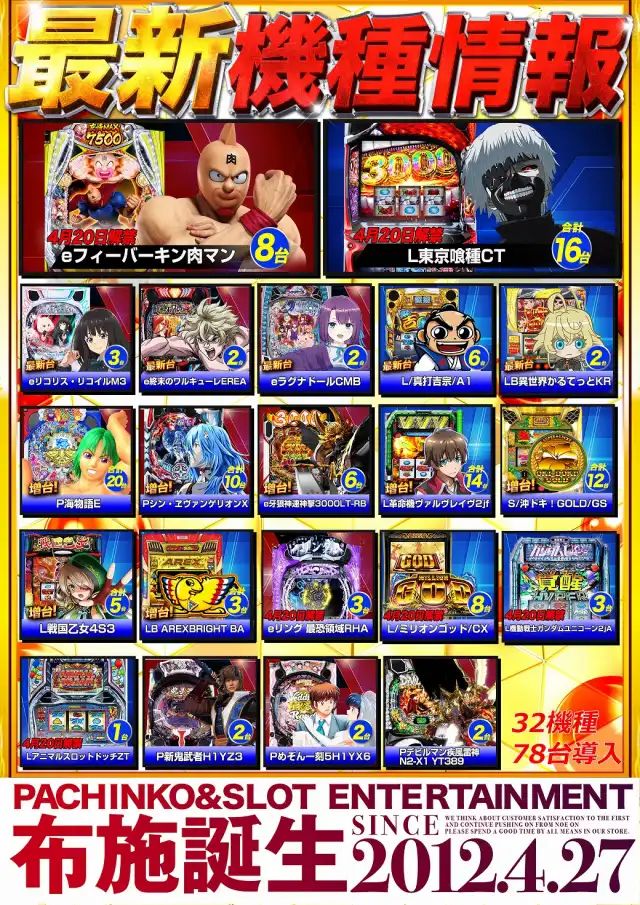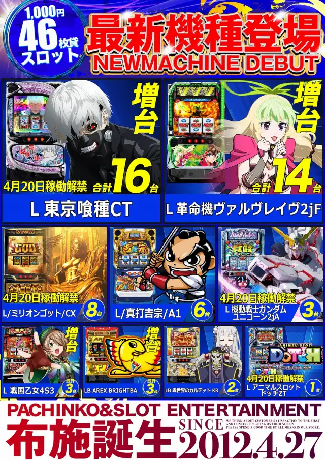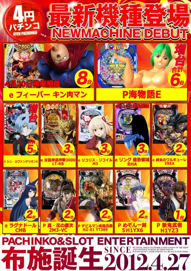 4月9日12時オープン!大型新台入替予定!4月周年月間!