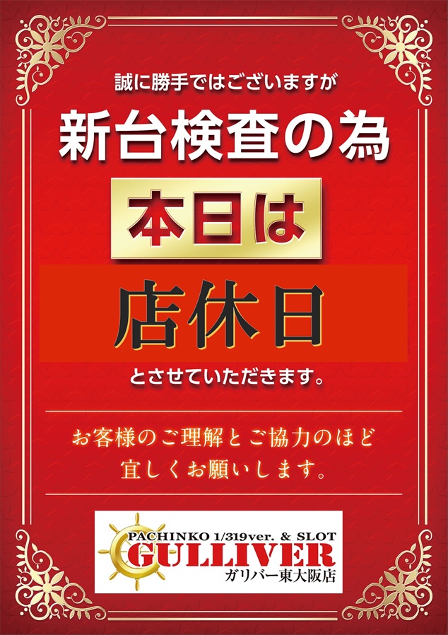 新台入替検査時は店休日となります。 |