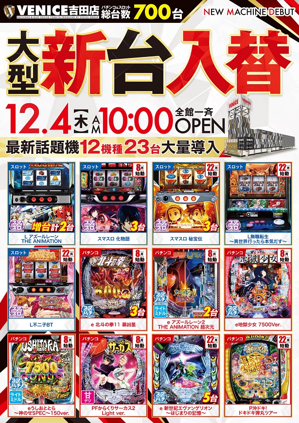 12/4(木)【大型新台入替】×【スロパチガール来店】