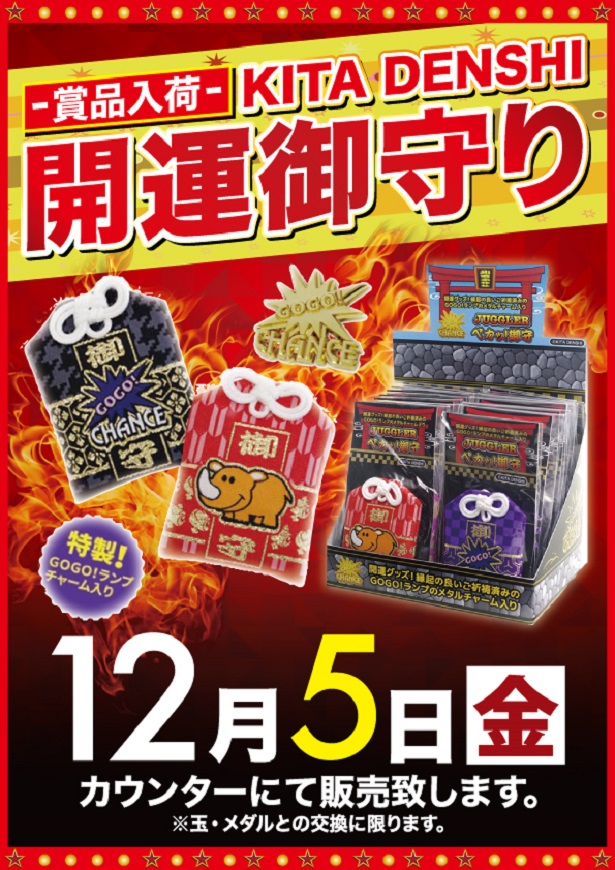 12/5(金)【大型新台入替】×【北電子『開運御守り』入荷】