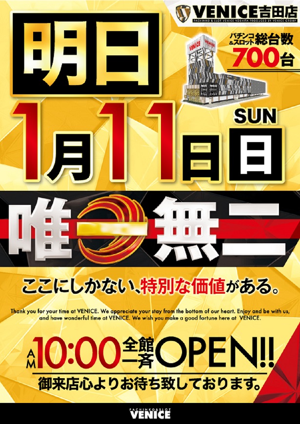 1.11(日)【唯一無二】×【スロパチ景品】×【新台入替】