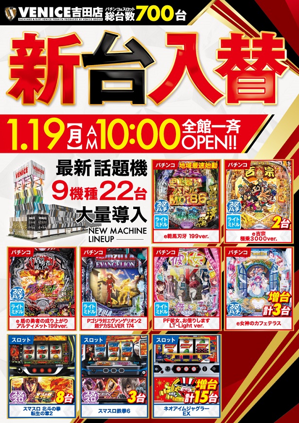 1.19(月)【地域最速新台解禁】×【スロパチガール来店】