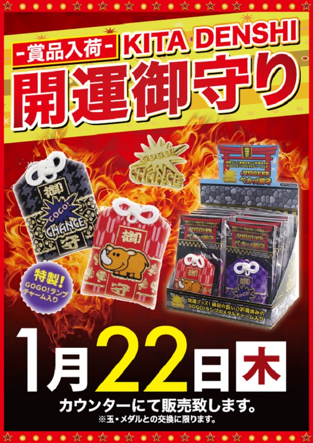 1.22(木)【唯一無二】×【北電子『開運御守り』入荷】