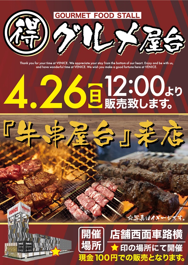 4.26(日)【週末話題発信】×【『牛串屋台』来店】