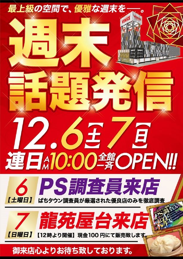 12/6(土)【大型新台入替】×【PS調査員来店(虹)】