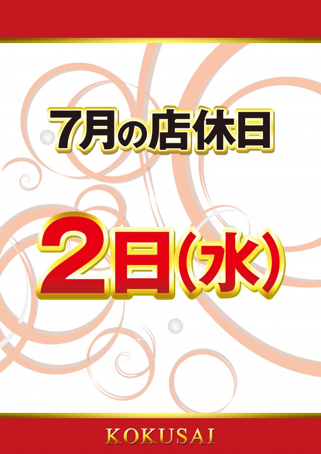 店休日です。7月は変則的となり