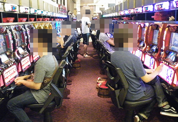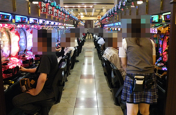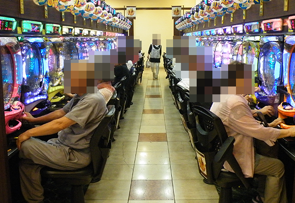 1円パチンコも多くのプレイヤーでにぎわい、ほぼ満席といった状況。