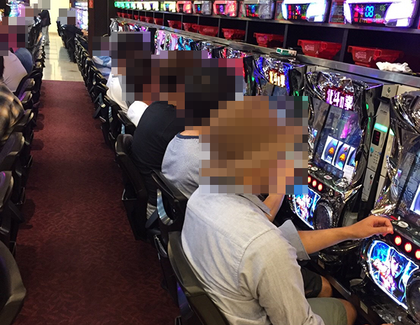 夕方頃の1000円/47枚パチスロのなかで、とくに活気づいていたのは新台の「パチスロ北斗の拳 修羅の国篇」。満席となっているだけでなく、機種の性能を引き出しているような姿が多かったことも印象的であった。