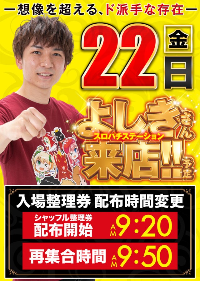 明日22日(金)『スロパチステーションよしきさん来店!!』