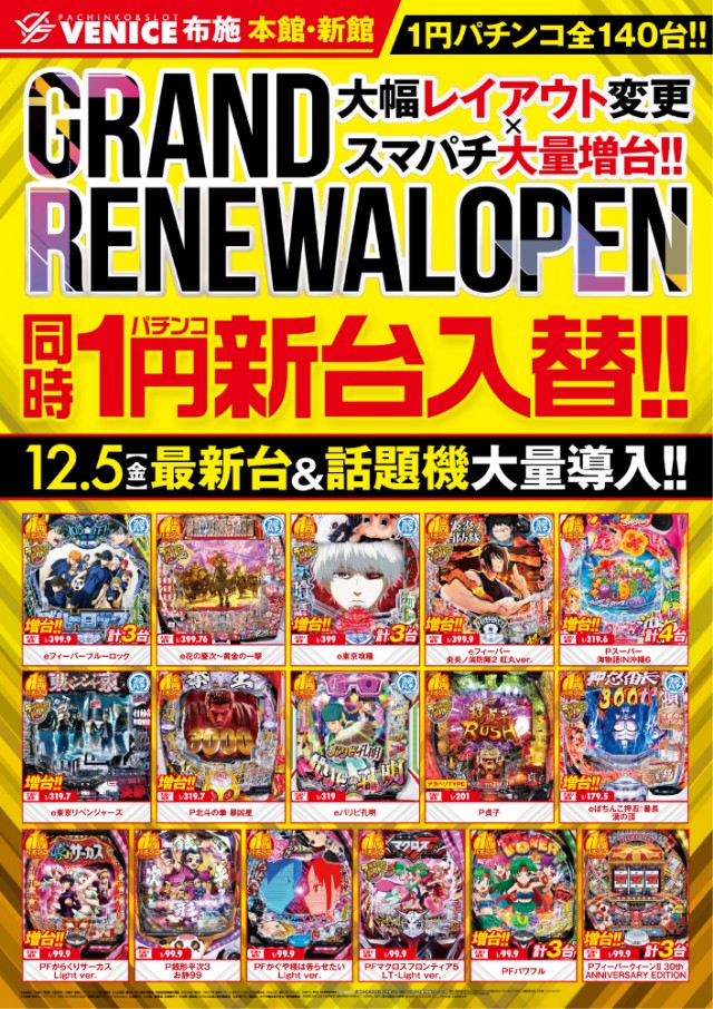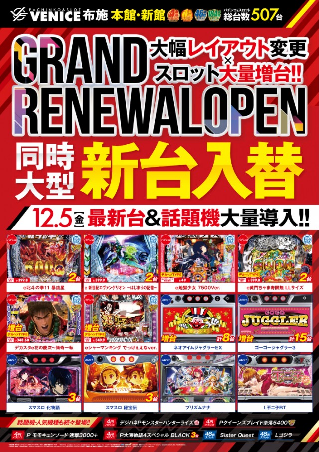 本日は新台地域最速解禁!&グランドリニューアル始動!