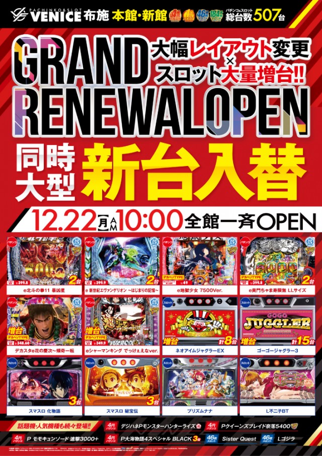 皆様必見!大型新台入替始動!支持率№1に挑戦!