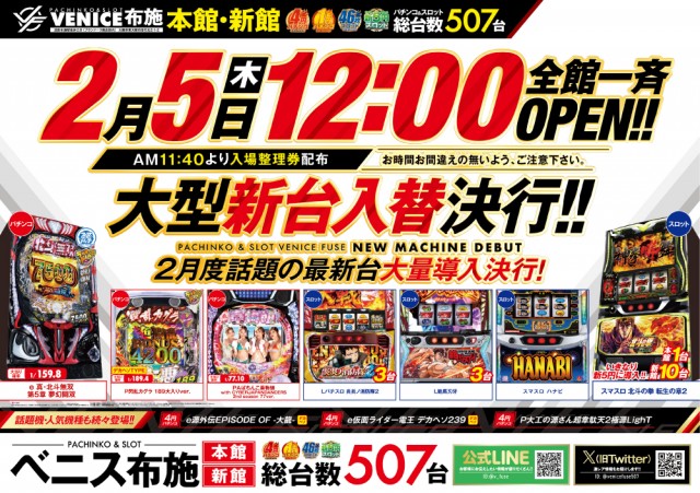 本日12時開店!大型新台入替決行!スロパチ景品入荷!