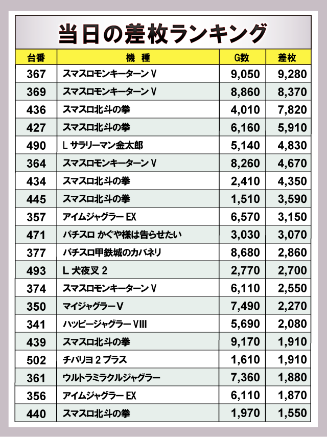 ※記事内の差枚表記はぱちタウン独自調査に基づくものです。ご了承ください。