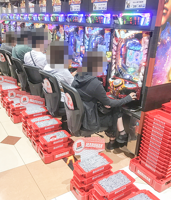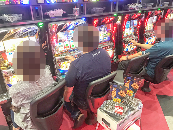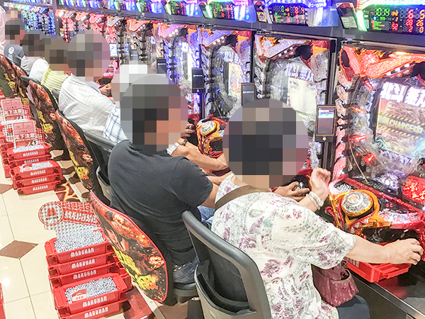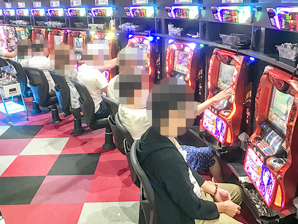 取材時の店内には既に多くのプレイヤーが集結し、パチンコ・パチスロを問わずにぎやかな状況となっていた。