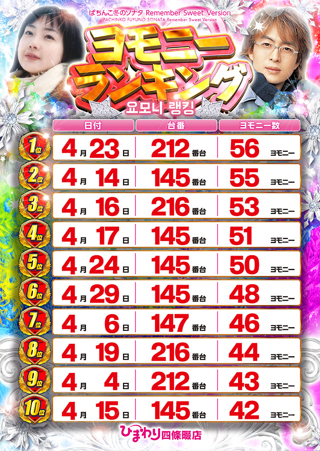 1位 12月29日(月) 2位 12月19日(金) 3位 12月12日(金)