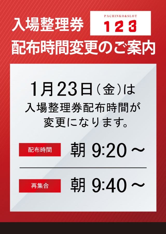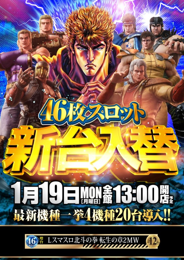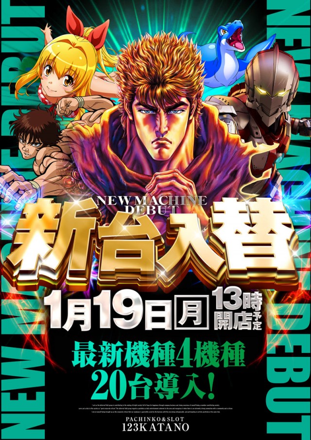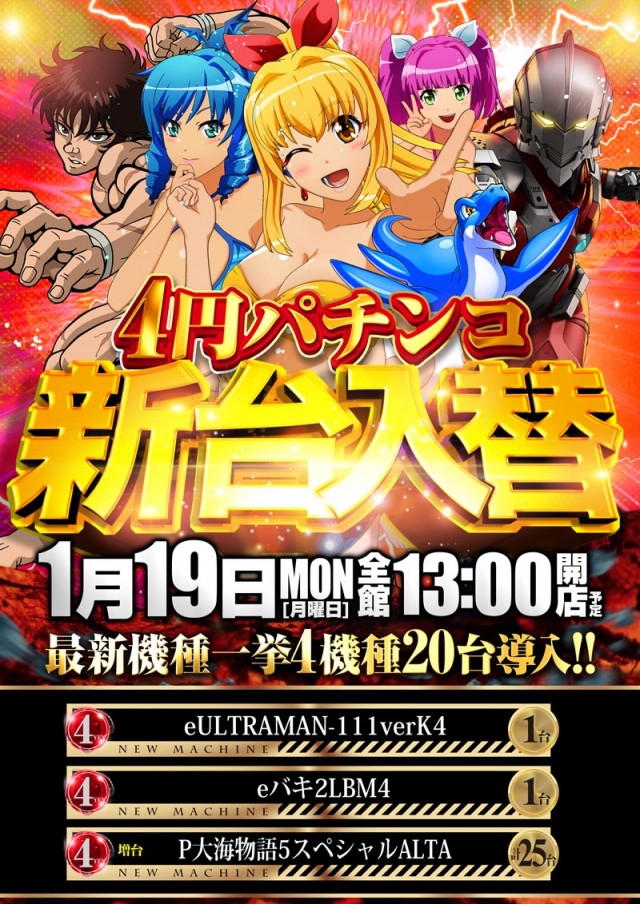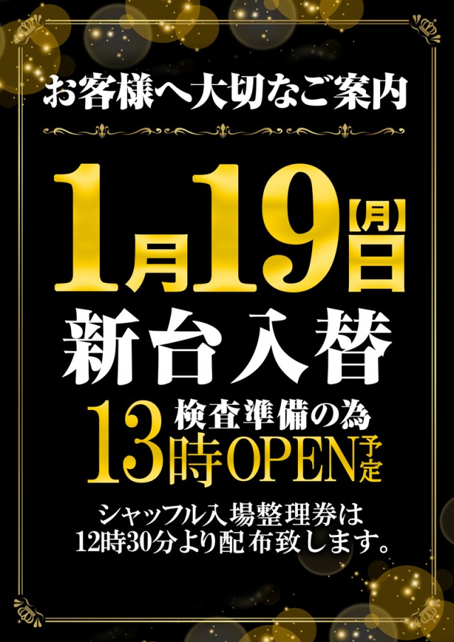 1月19日【月】新台入替!13時開店予定!!
